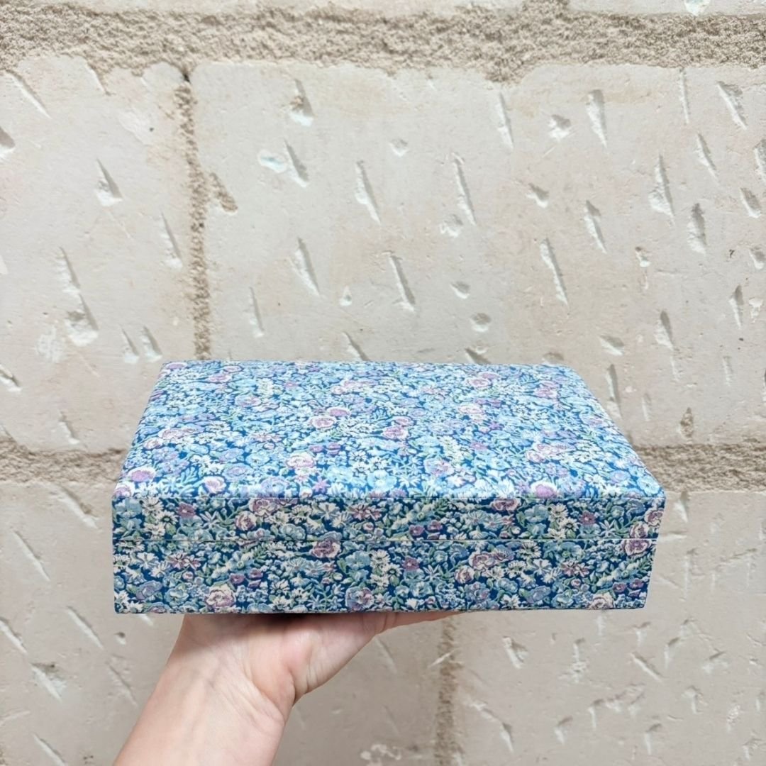 Chaque mois, découvrez La Boite du Mois : une création tapissée confectionnée avec soin dans un Liberty sélectionné. Déjà prête, sans délai de fabrication, et expédiée avec les frais de port offerts.